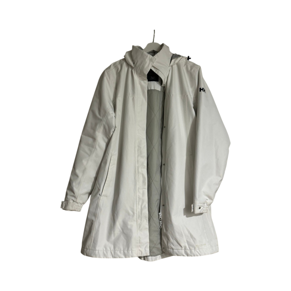 Helly Hansenin pitkä takki. Kunto hyvä, ei mitään huomattavia käytönjälkiä kuin ihan vähän tummentumaa hihoissa (kuva 3). Pitää tuulta ja vettä. Verkkovuori antaa vähän lämpöä. Koko xl mutta sanoisin et vastaa paremmin M-L, itse tätä käyttänyt M kokoisena silleen että alle mahtuu esimerkiksi huppari tai villapaita. ovh 135€