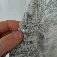 Pieni reikä oik. puolella takaa puserosta. Saa varmaan korjattua. Ei haittaa käyttöä. Kts. yst. Viimeinen kuva.