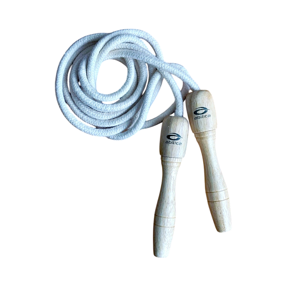 Valkoinen hyppynaru puukahvoilla, kunto hyvä. Käyttämätön