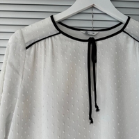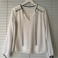 Cubus valkoinen pusero mustilla yksityiskohdilla koossa 36. Erinomaisessa kunnossa. Ei pesulappua/materiaalitietoja, mutta materiaali todennäköisesti polyesteri. Savuton koti, ei lemmikkejä.