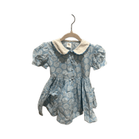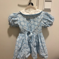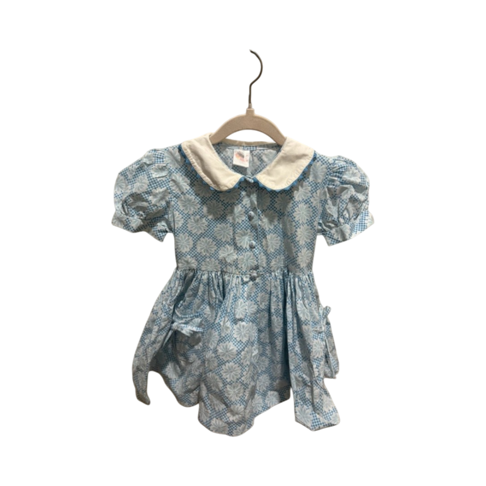 Vintage-tyylinen, lyhythihainen mekko, pyöreä kaulus ja rusetit. Koko 90