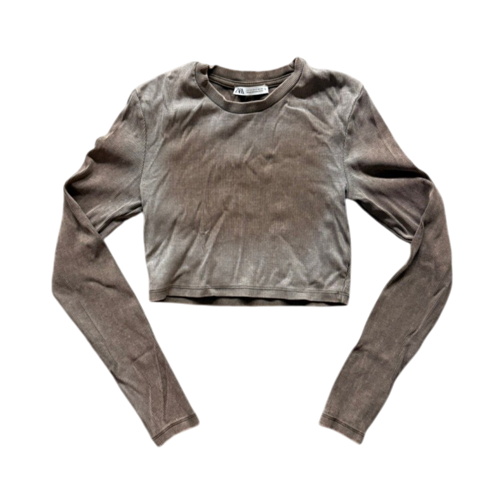 Pitkähihaisen ribbipaidan cropped-malli, ruskea.