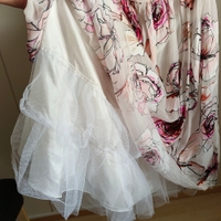 Trendy Look polvipituinen juhlamekko. Koko 44. Vastaa mielestäni pienempää katso mitat. Hutiostos netistä, edellisellä ollut kerran käytössä. Ostettu Haloselta. Piilovetoketju takana. Vuoren helmassa tylliä. Olkaimille paikat. Olkaimet saa mukaan, mutta toisen olkaimen kiinnityshakanen hajonnut. Siistikuntoinen. Pieniä langannousuja huomasin kankaassa.