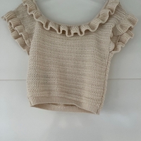 Ryhelötoppi, neulotun näköinen, lyhyt malli. Kerran käytetty.