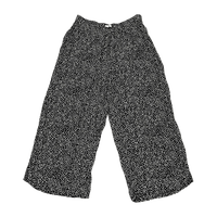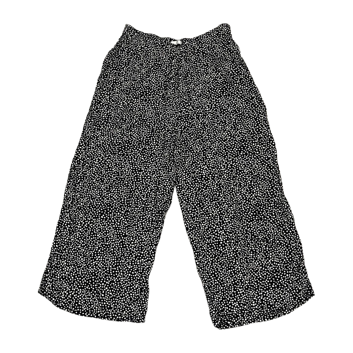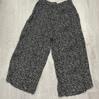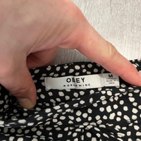 Obeyn mustat housut valkoisilla pilkuilla, koko M. Vyötärö noin 37cm ja pituus noin 87cm. Sivuilla taskut ja toisella sivulla vetskari. Koodi ML6961.