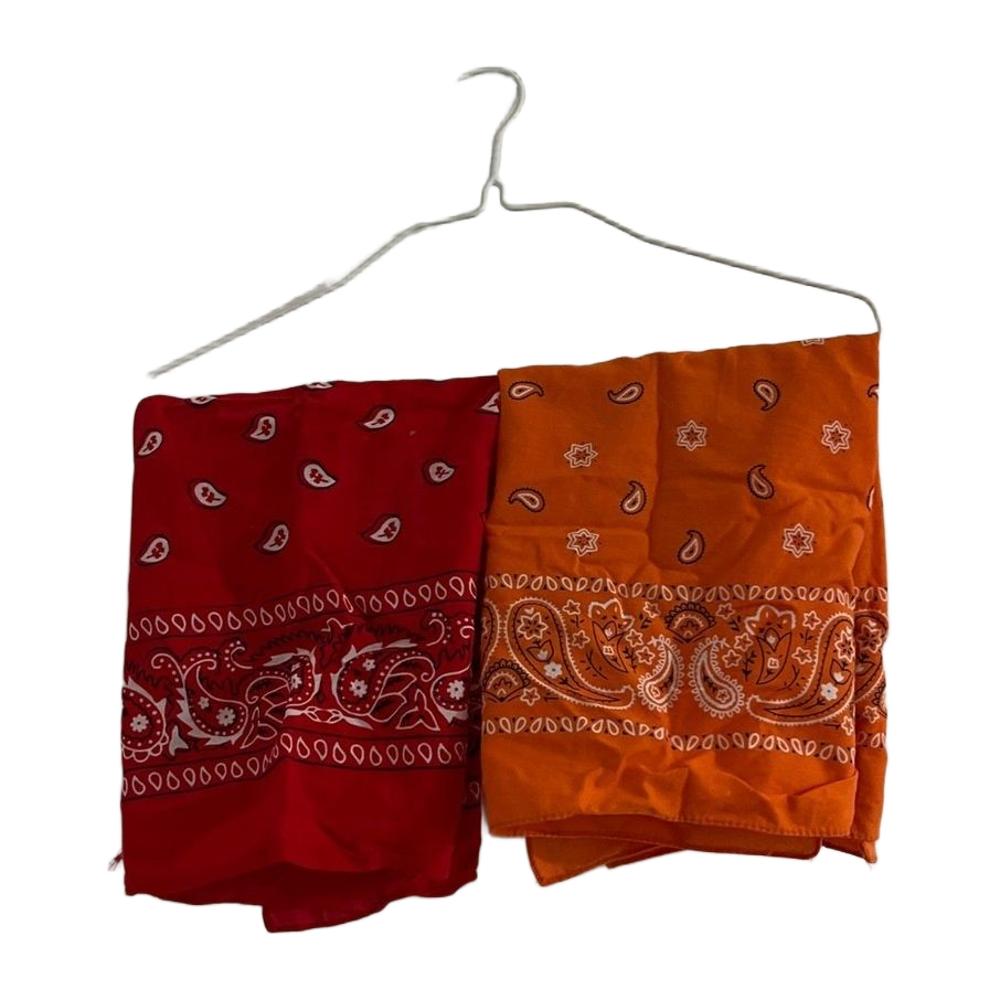 Kaksi bandanahuivia, reunoissa vähän rispaantumaa. Koodi ML6961.