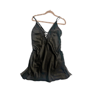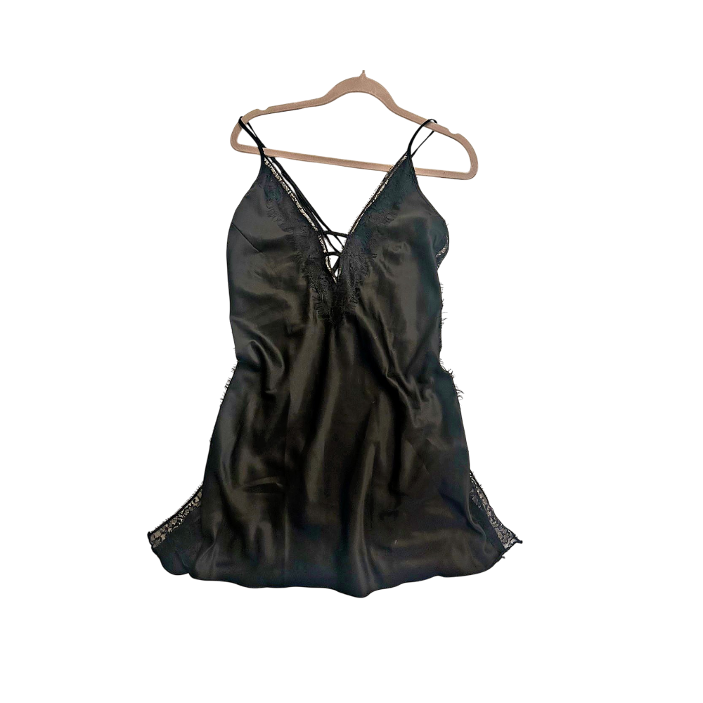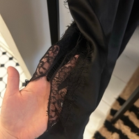 Hunkemöllerin musta satiininen yömekko pitsisillä yksityiskohdilla. Sivuilla halkiot🖤 Koko L, mutta ollut sopiva myös S-M -kokoiselle.