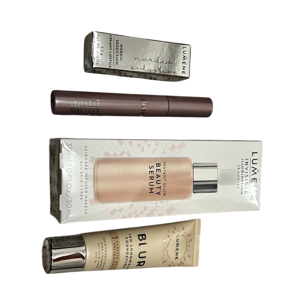 Ripsiväri, huulipuna, sävyseerumi, meikkivoide.