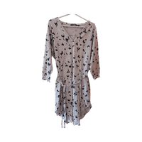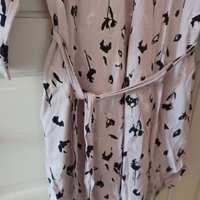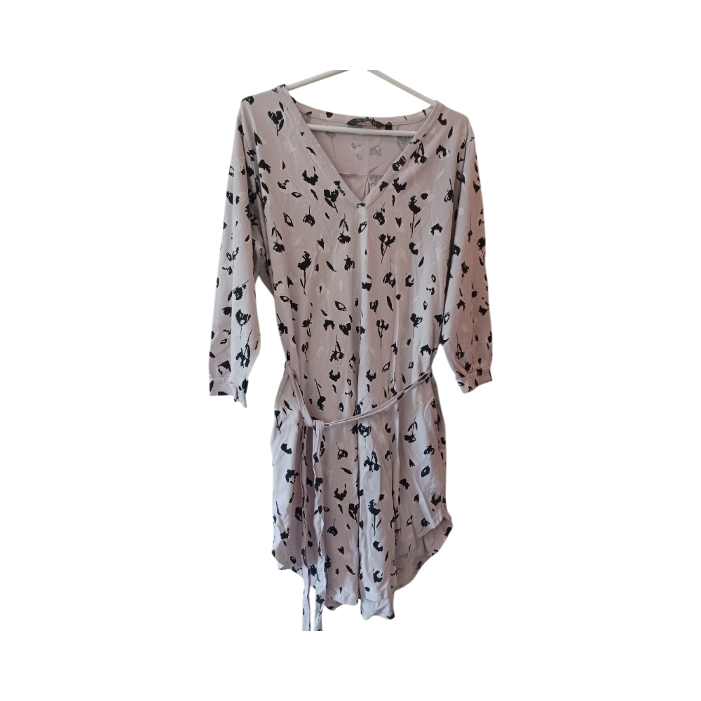 Väljä, vyöllinen mekko kukkakuvioilla. Mekossa on taskut. Koko M. Menee myös minulle joka olen kokoa L. Kainalo-kainalo n.54cm. Väri on vaaleanpunaisen ja laventelin väliltä.