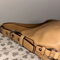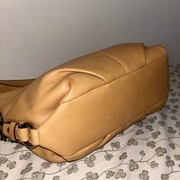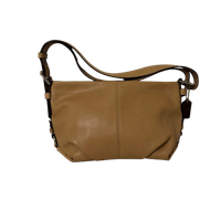 Coach Legacy East-West Duffle F15065 in smooth tan glove-tanned leather. 2-way convertible shoulder/crossbody style. Beautiful even patina with small darker dots — natural aging of the leather, not defects, the bag will get more beautiful with time. Super good condition and well-preserved inside and outside, timeless and classic and trendy Coach piece.