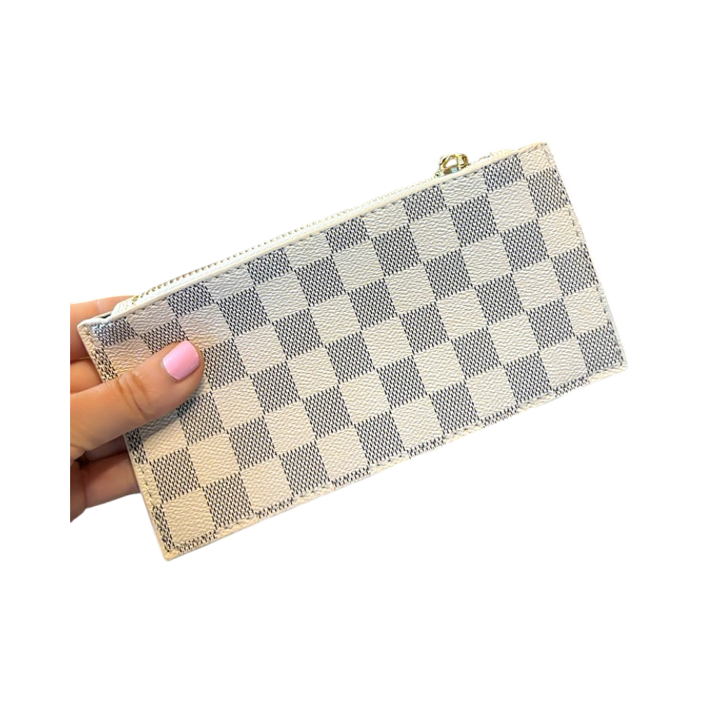 Beige valkokuviollinen lompakko, pieni ja siisti