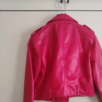 Hieno pinkki nahkatakki, koko XL. Erinomainen kunto. Puuttuu vyö
