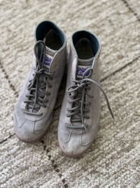 Harmaat nahkaiset tennarit, käytetyt mutta hyväkuntoiset.