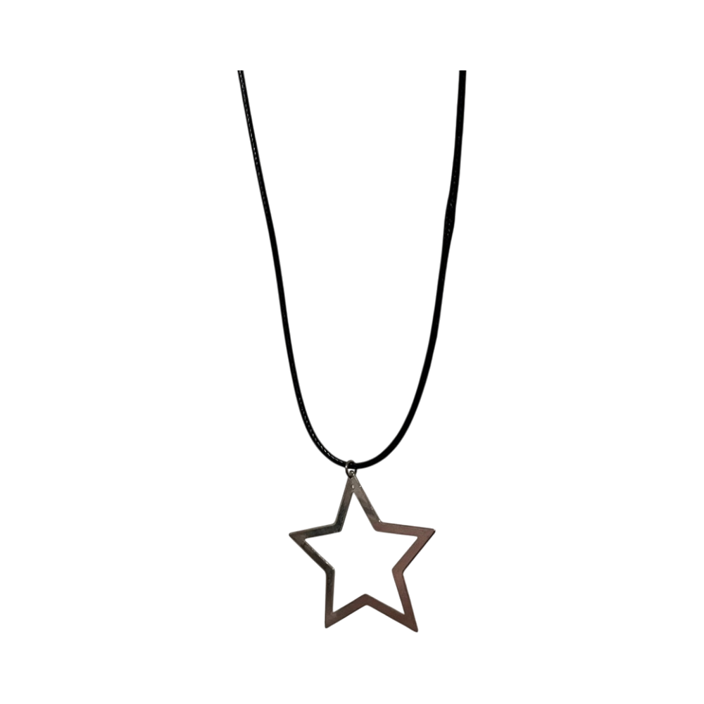 Hopeanvärinen tähtiriipus mustalla nauhalla. #handmade