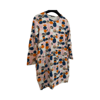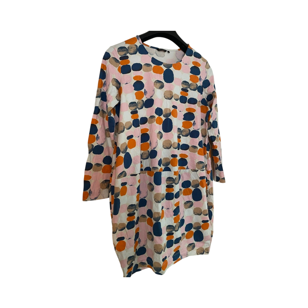 Värikäs, kuviollinen pitkähihainen puuvillamekko, koko M. Ei moitteita. Olalla napit.
