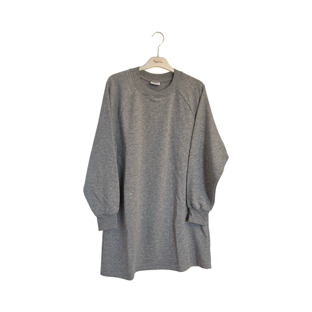 Harmaa rento collegemekko. Leveähkö helma/rento istuvuus.