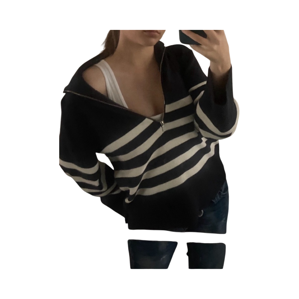 Väljä raidallinen neule, puolivetoketju, hyväkuntoinen.