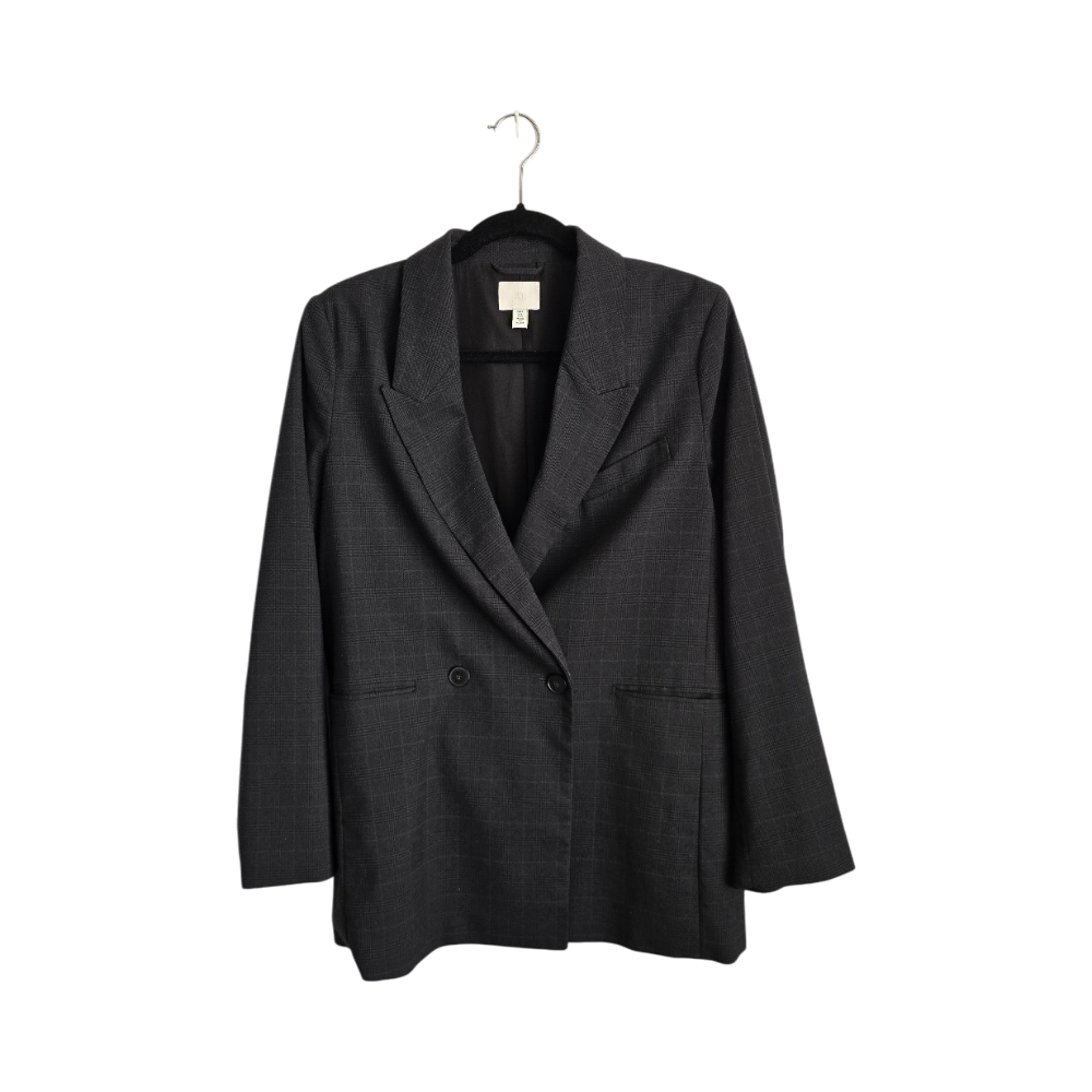 Musta, ruudullinen oversized bleiseri, kaksirivinen napitus.