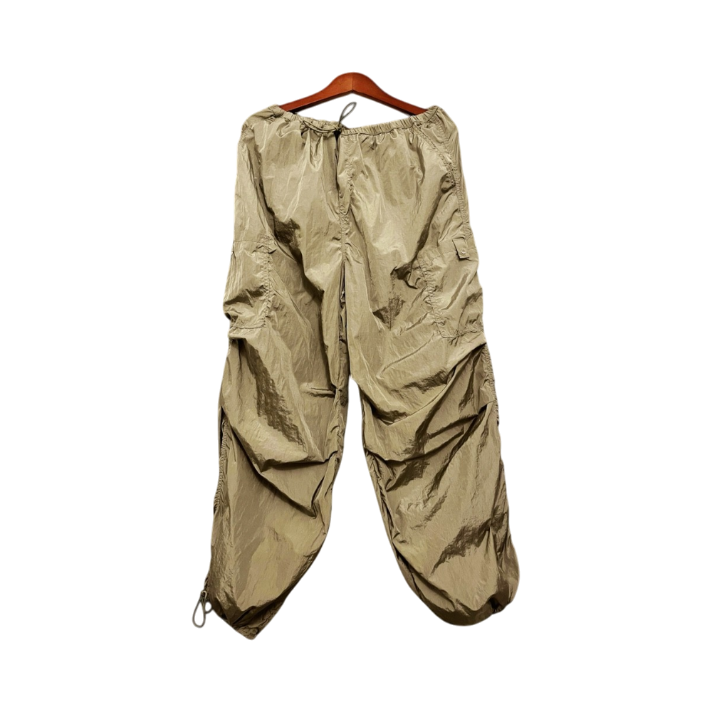 Leveät, nyppyyntymätön kevyt cargo-housut, narusäädöt lahkeissa. Kiiltävä pinta