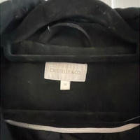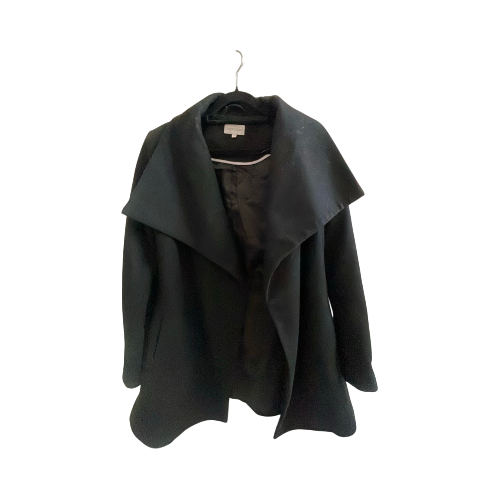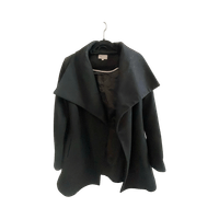 Lyhyt musta villasekoite-takki suurella kauluksella.