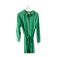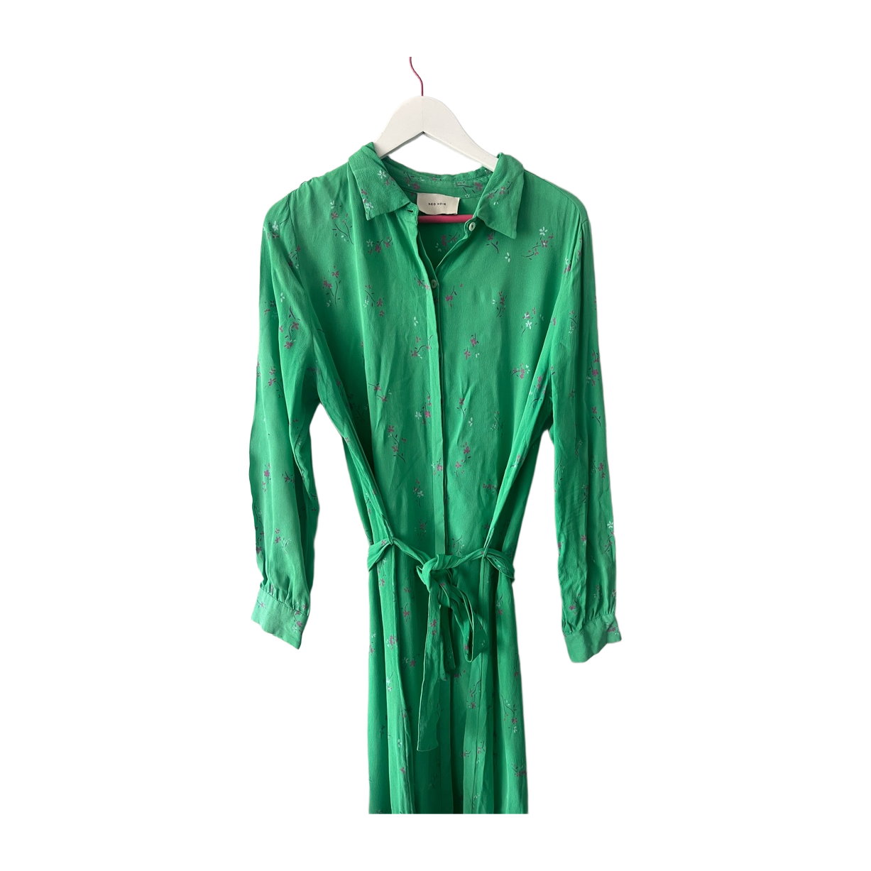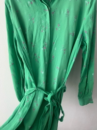 Vihreä kukkamekko vyöllä, pitkähihainen, kukkakuvioitu