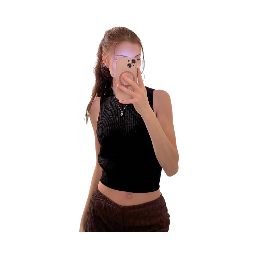 Naisellinen musta neulecrop-top, hyvässä kunnossa. Sopii xs-m