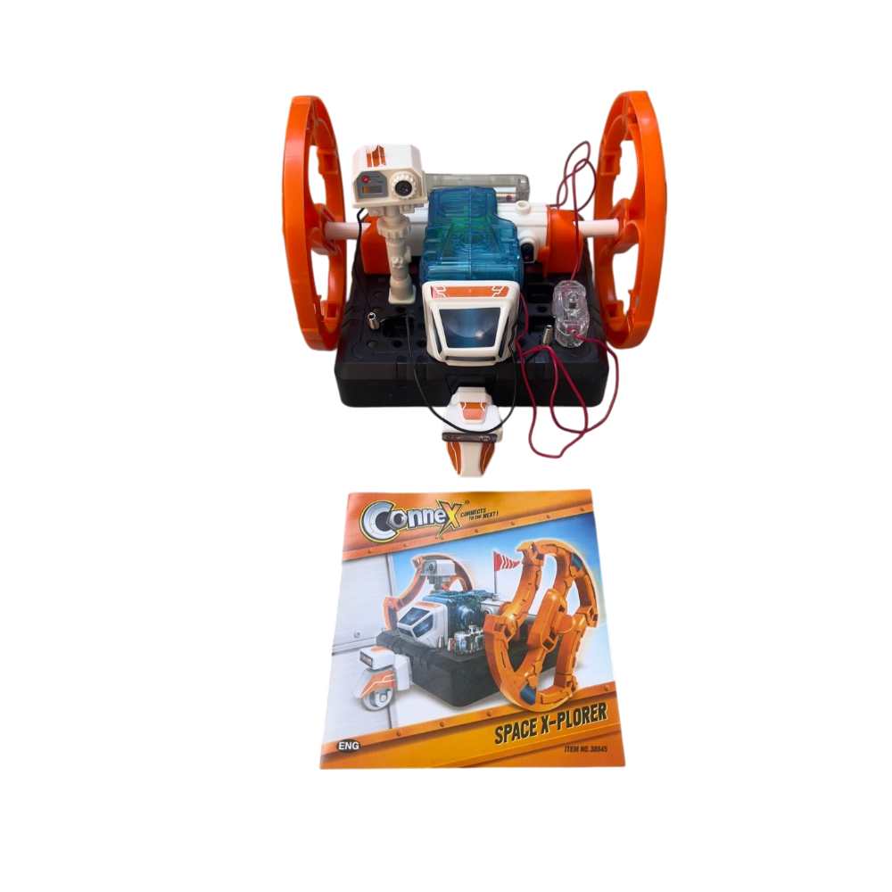 Elektroninen raketti-/avaruuslelu rakennussarjalla.