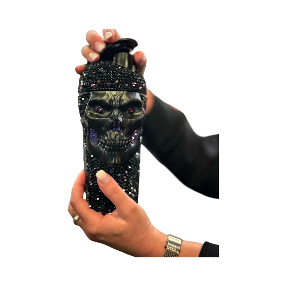 Stylish black skull shaker for drinks.. drink bottle with chrystals. Handmade