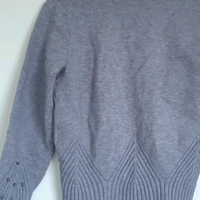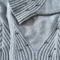 Lyhyt neuletakki. Vyötäröillä ja hihoissa helmikirjailut.