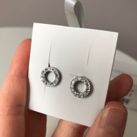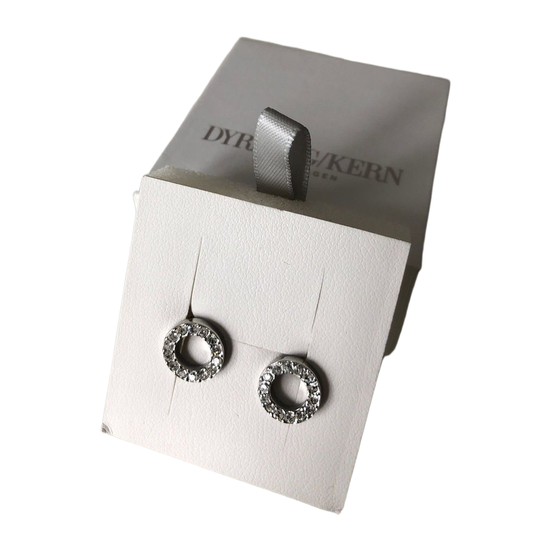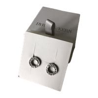 Käyttämättömät korvikset laatikossaan. Halkaisija 1 cm.