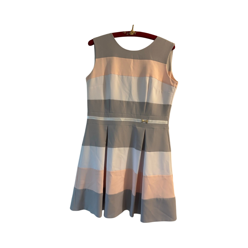 A-linjainen raidallinen hihaton mekko, vetoketju takana. Kai-kai 52. Vuori.