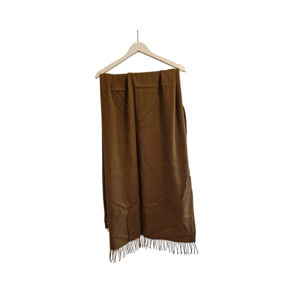 Pehmeä ruskea villahuivi hapsuilla, hyvä kunto. Lähes käyttämätön, kuvassa hieman ryppyinen, ollut laatikossa.