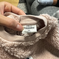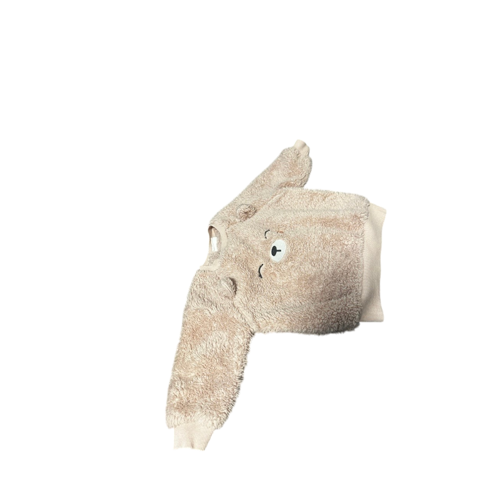 Pehmeä vaaleanpunainen karvainen vauvan paita, söpö karhuprintti.