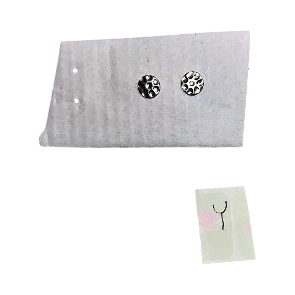 Hopeanväriset korvakorut. Puhdistettu ja desinfioitu käytön jälkeen. Eläintalous MMM, lisätietoja saa kysymällä