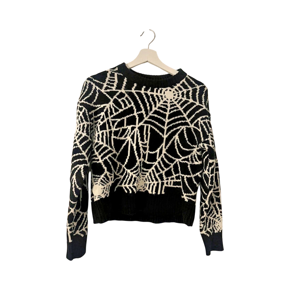 Paita mustalla pohjalla ja valkoisella kuvioinnilla.