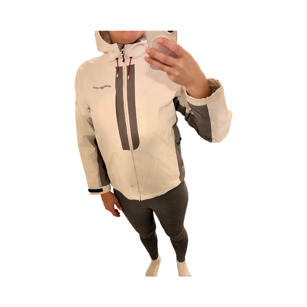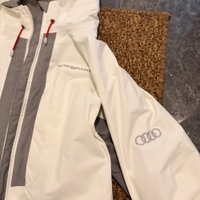 Veden ja tuulen pitävä laadukas takki esim. veneilyyn. Takissa muutamassa kohdassa likaa (kuvissa näkyy).