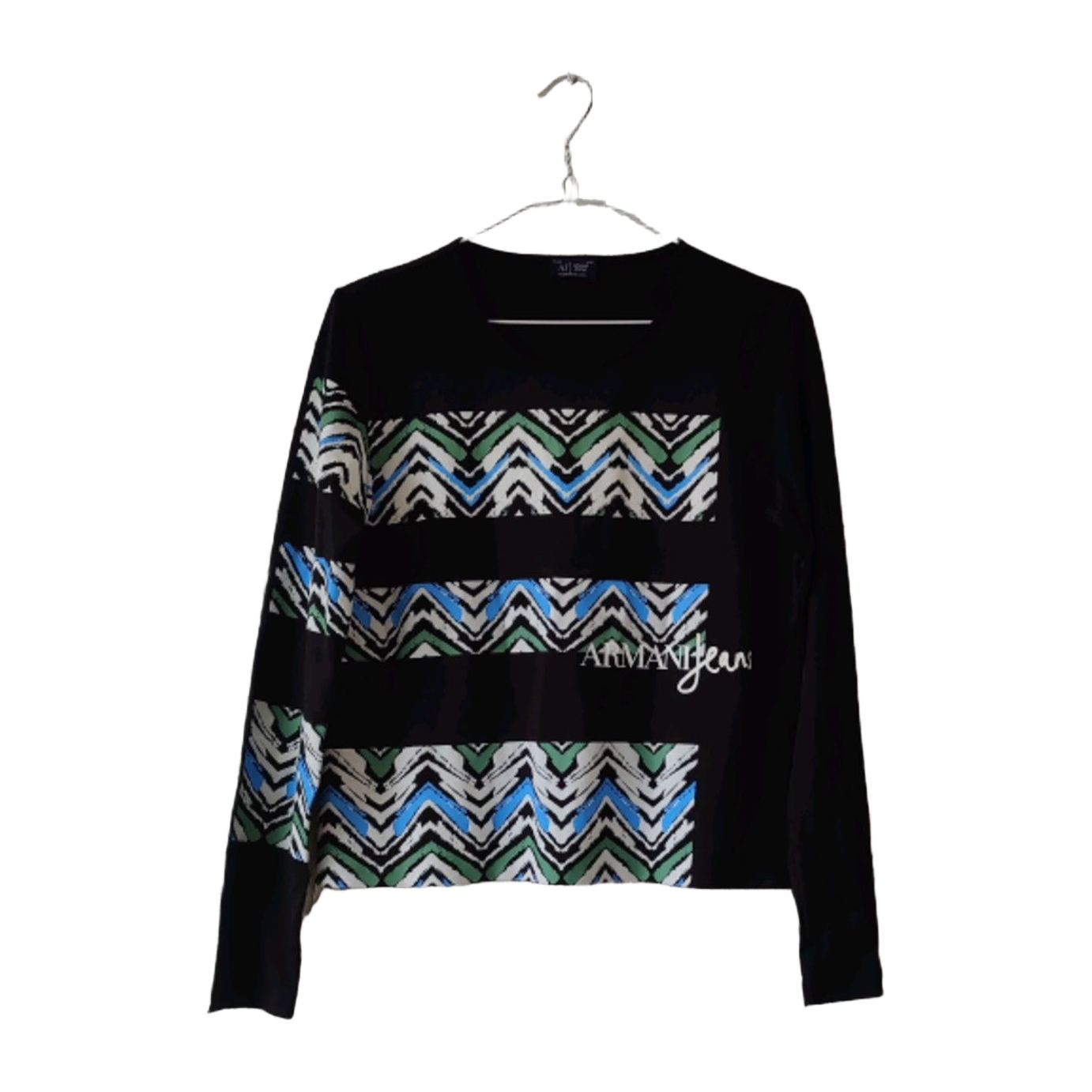 Black longsleeve with a geometrical print. New, newer worn. Fits S-M. #armani #longsleeve #black #cotton