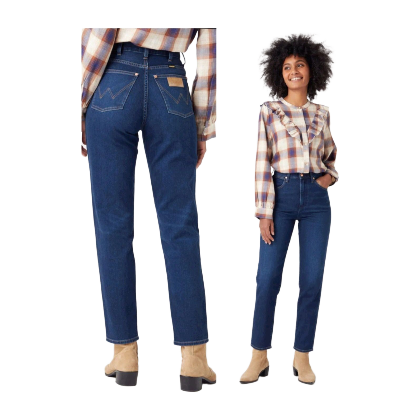New, tags attached. Wrangler Womens High Tapered Crop Mom Jeans in Deep Sea colour. Size 26/32. Relaxed fit, fits a size 27 too.