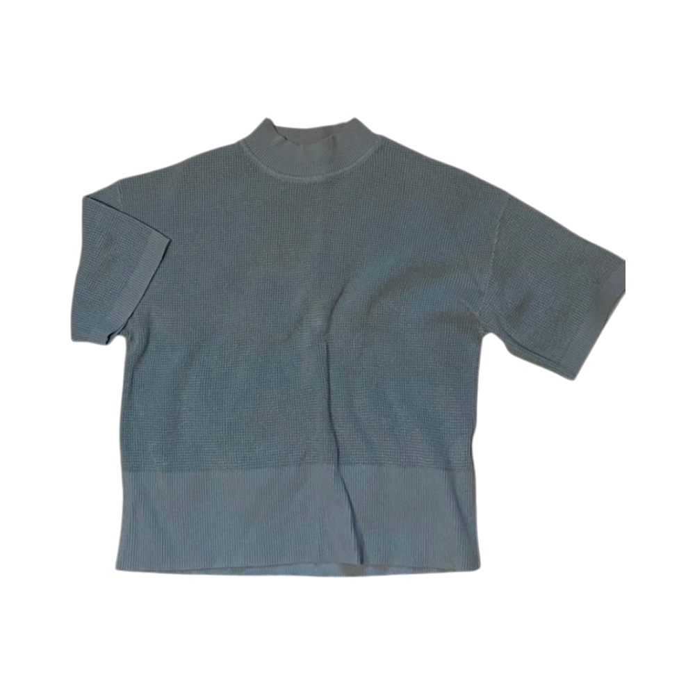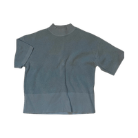 Lyhythihainen ribbineule, korkeahko kaulus, rento istuvuus.