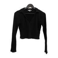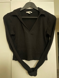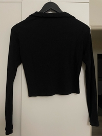 Musta, hieman lyhyemmän mallinen pitkähihainen, jossa kaulus ja syvä pääntie.