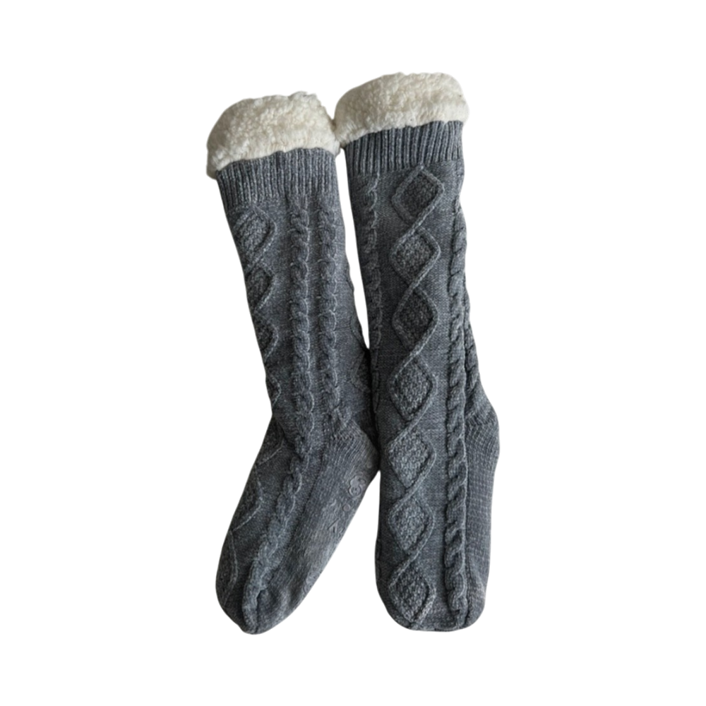 Comfystoren käyttämättömät, kerran jalkaan kokeillut söpöt harmaat pörröiset sukat, pituus puoleenväliin pohjetta itsellä. Mahtuu ainakin 39-40 jalkaan.
