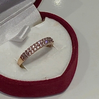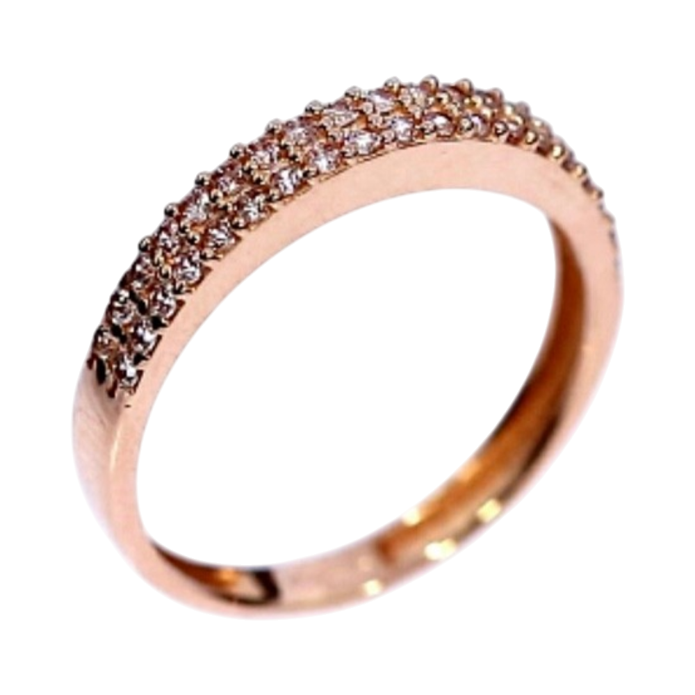 Rose gold tone pavé ring with small clear stones, elegant everyday piece.