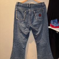 Light wash flared denim jeans, size 31 waist.