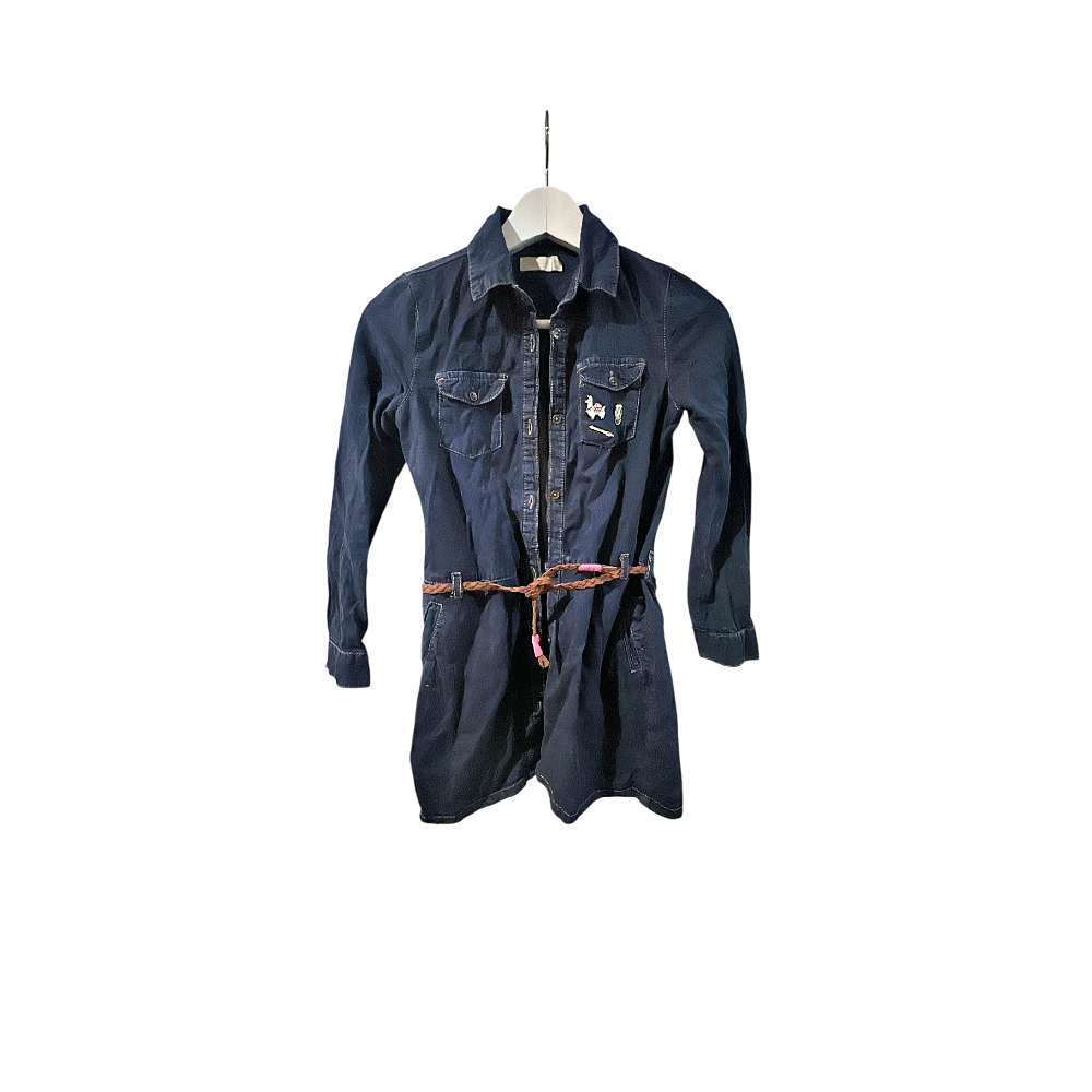 Farkkutakki, hyvässä kunnossa, vyö mukana. Koko 128-140