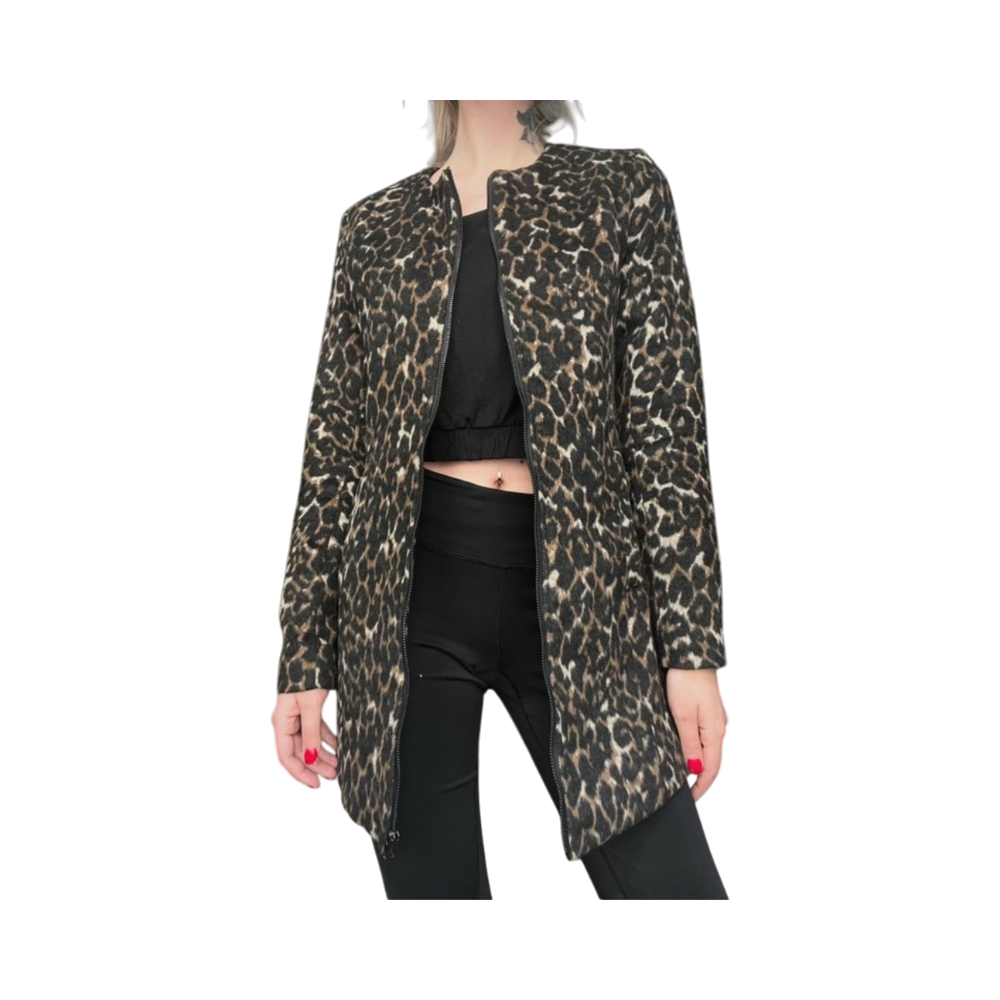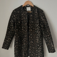 Leopardikuvioitu pitkä takki, siisti käytetty kunto.