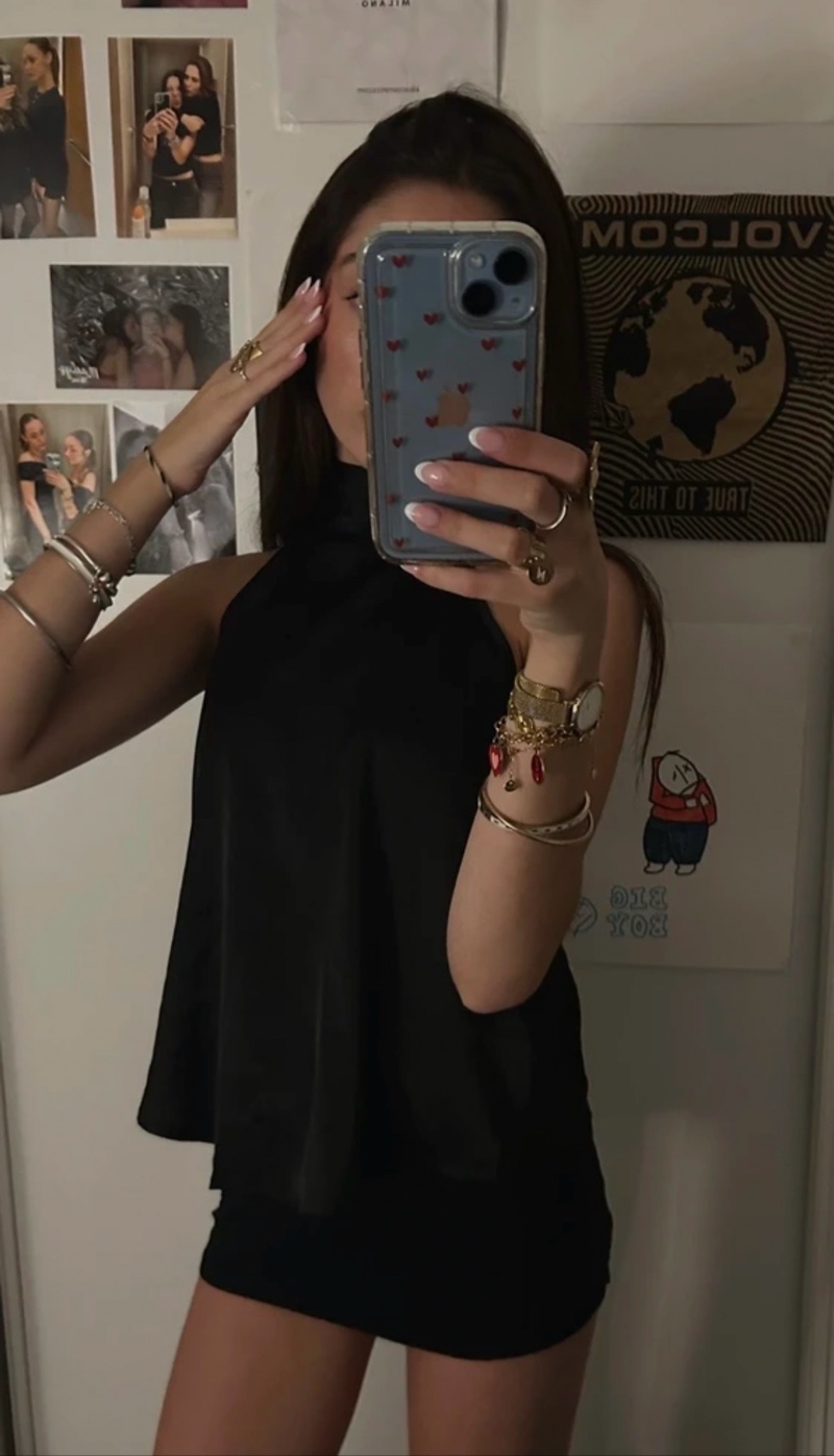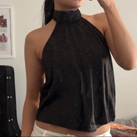 Avonainen selkä, solmittava kaulus, juhlavampi musta toppi. Koko S. Ei minkäänlaisia käytön jälkiä.