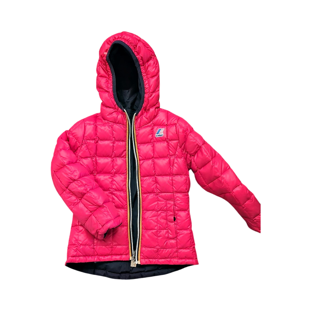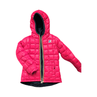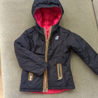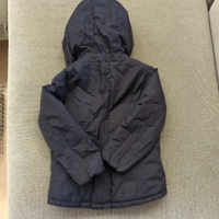 Lightweight, reversible, and stylish down jacket. Pockets on both sides. Great to match with all outfits on colder days. Bought new and used by one child only. Still in very good condition but too small for us now.