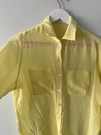 Naisten keltainen pitkähihaisen kauluspaita, napit edessä