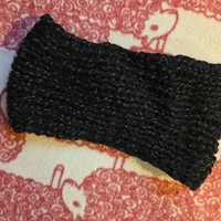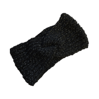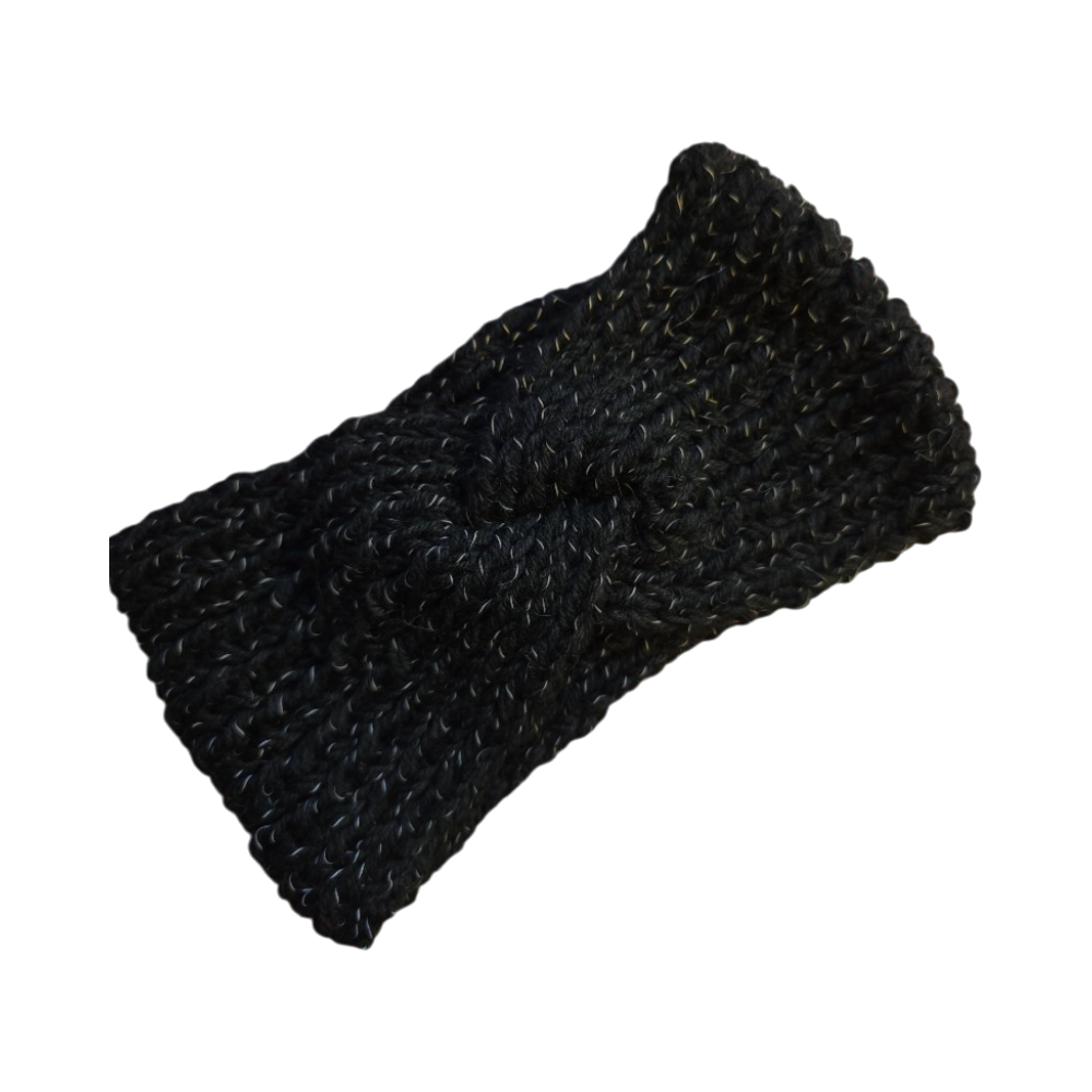 Pehmeä neulottu pannapanta, solmukoriste edessä, lämmin.