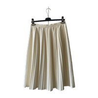 Luonnonvalkoinen vekkihame. Koko 42, mutta on mielestäni pienempää mitoitusta. Vyötärönympärys n. 74 cm ja pituus 70 cm. Villasekoitetta.